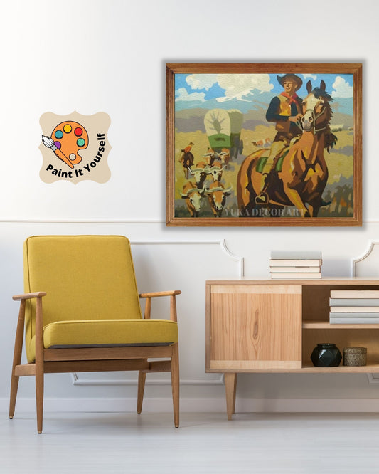 Vintage PAINT by NUMBER Kit Adult, Cowboy Desert Art , Easy Beginner Acrylic Painting DIY Kit,Vintage Decor Gift