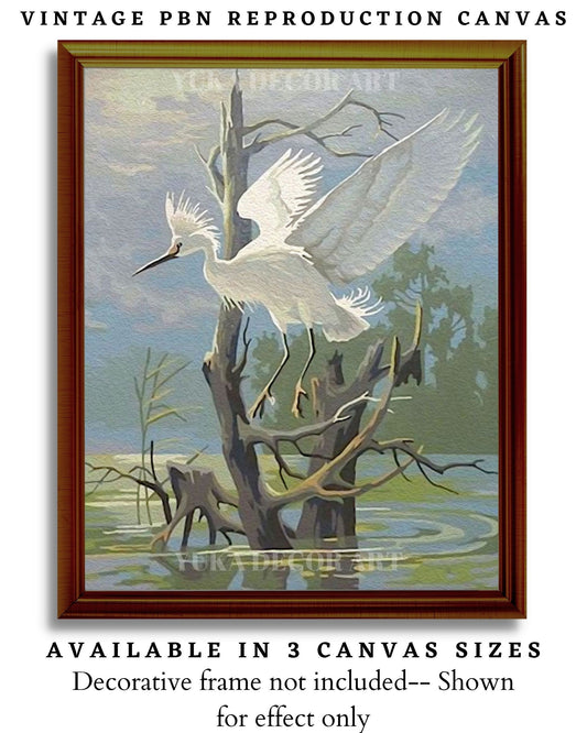 White Egret Bird Vintage PAINT by NUMBER Kit | Adult DIY Painting Kit Birds In Lake , Easy Beginner Oil Painting,Vintage Art Decor Gift