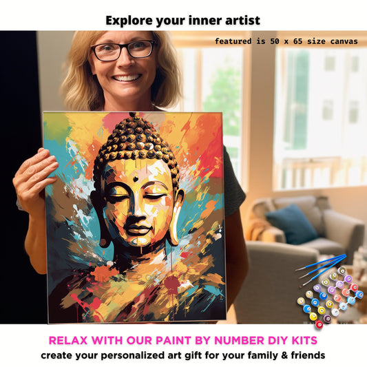 Buddha PAINT by NUMBERS Kit For Adults Buddha Statue Vibrant Multicolour Abstract Art DIY Paint Kit Zen Meditation Studio Wall Decor Gift