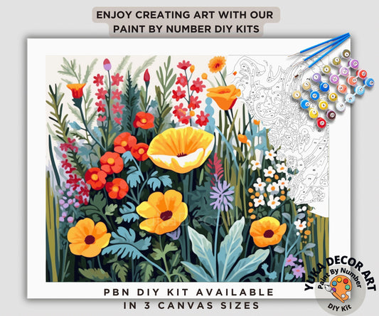 Flowers PAINT by NUMBER Kit for Adults Modern Boho Whimsical Art Easy Beginner Acrylic Paint DIY Kit Wall Art Gift for Mom Art Custom Kit