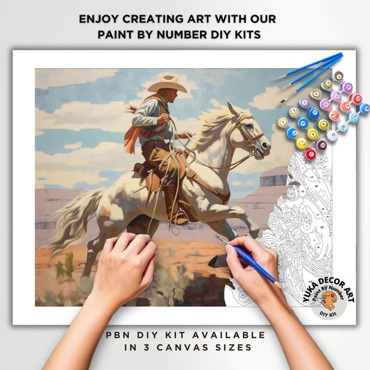 Cowboy PAINT by NUMBER Kit Adult Desert Horse Grand Canyon Vintage Style Art Easy Beginner Painting DIY Midwest Ranch decor Gift For Dad