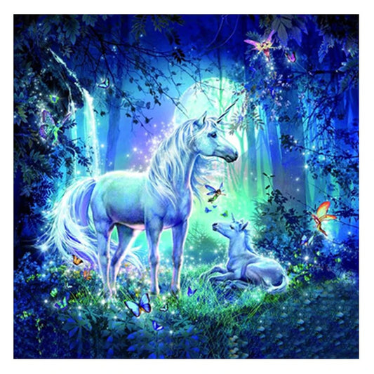 BLUE UNICORN IN THE FOREST Diamond Painting Kit