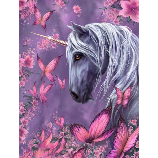 UNICORN WITH PINK BUTTERFLIES Diamond Painting Kit