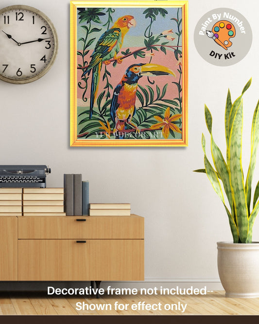 Macaw Parrot Birds PAINT by NUMBER Kit | Vintage Style Adult DIY Painting Kit , Easy Beginner Oil Painting,Vintage Home Decor Gift
