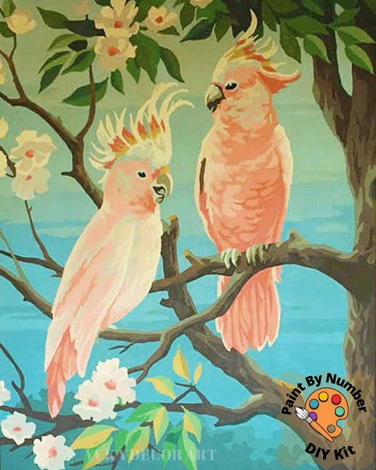 Pink Cockatoo Birds PAINT by NUMBER Premium DIY Paint Kit Adult , Vintage Style Easy Beginner Painting Gift,Wall Decor Gift