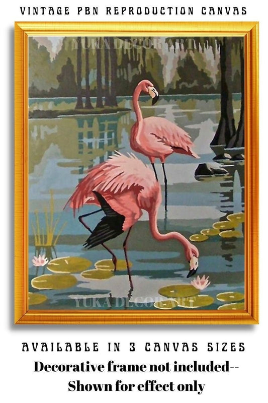 Vintage Style Pink Flamingo PAINT by NUMBER Kit for Adult , DIY Paint Kit Birds In Lake , Easy Beginner Acrylic Painting,Home Decor Gift
