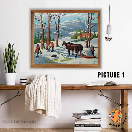 Winter Scene PAINT by NUMBER Kit for Adult , DIY Nature Vintage Style Art , Easy Beginner Acrylic Painting Kit,Vintage Decor Gift