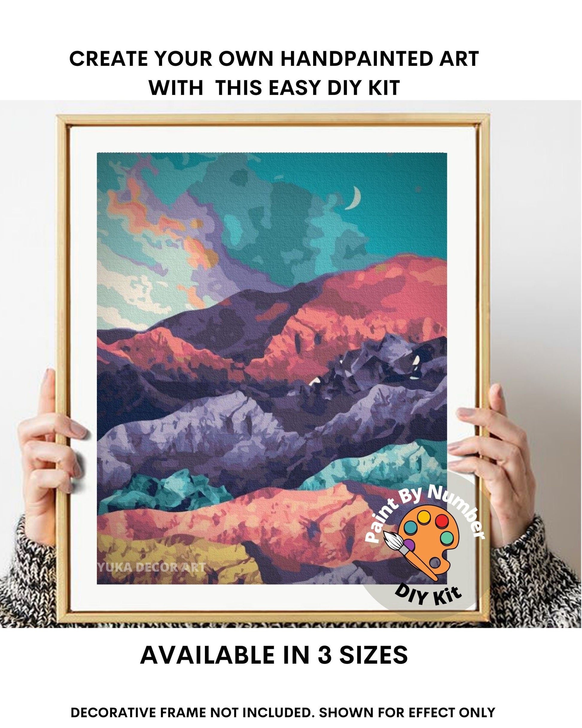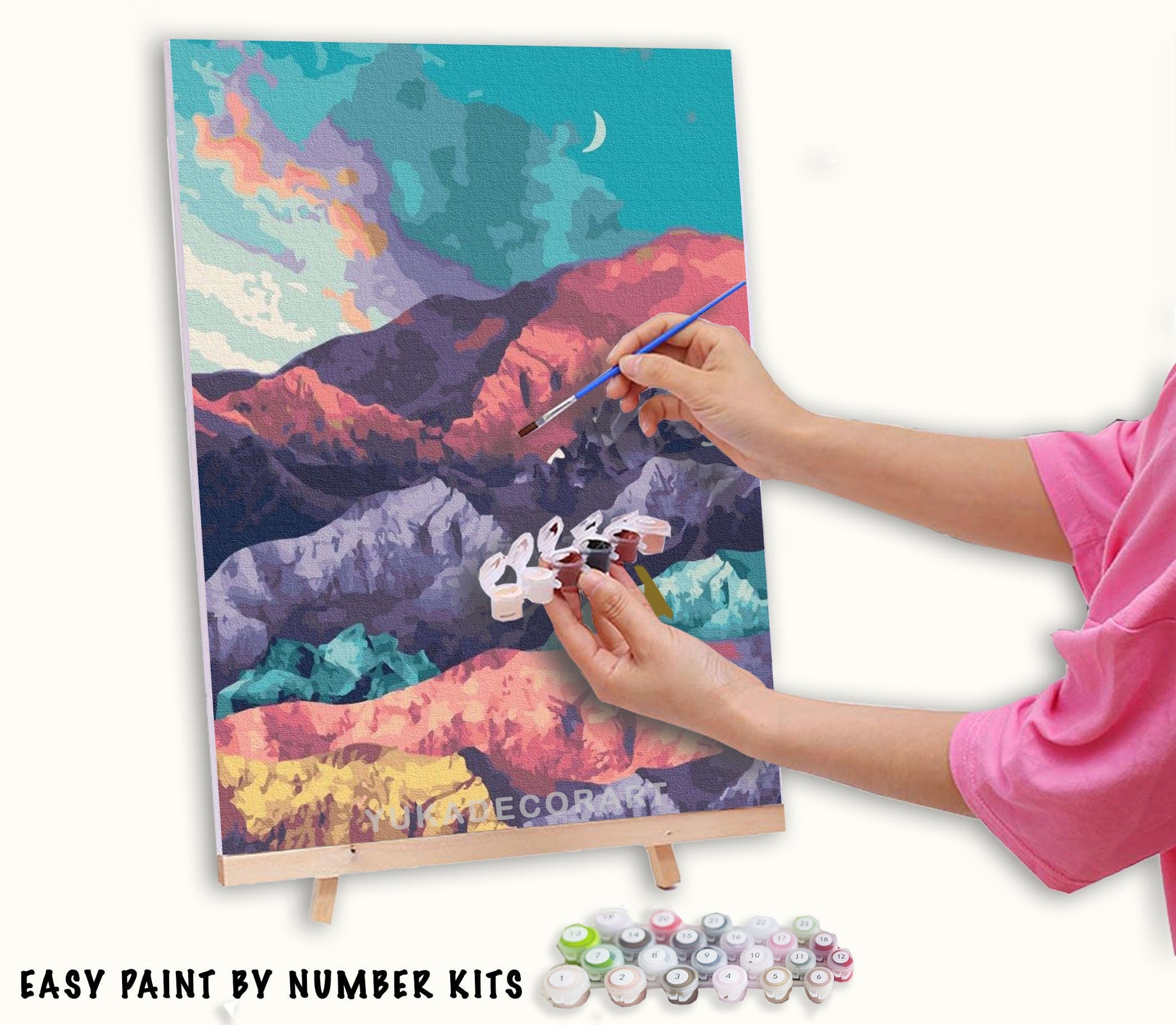 Abstract Mountain PAINT by NUMBER Kit for Adults , Sunset Scene ,Easy DIY Beginners Acrylic Paint Kit ,Living Bedroom Decor, Gift For Friend