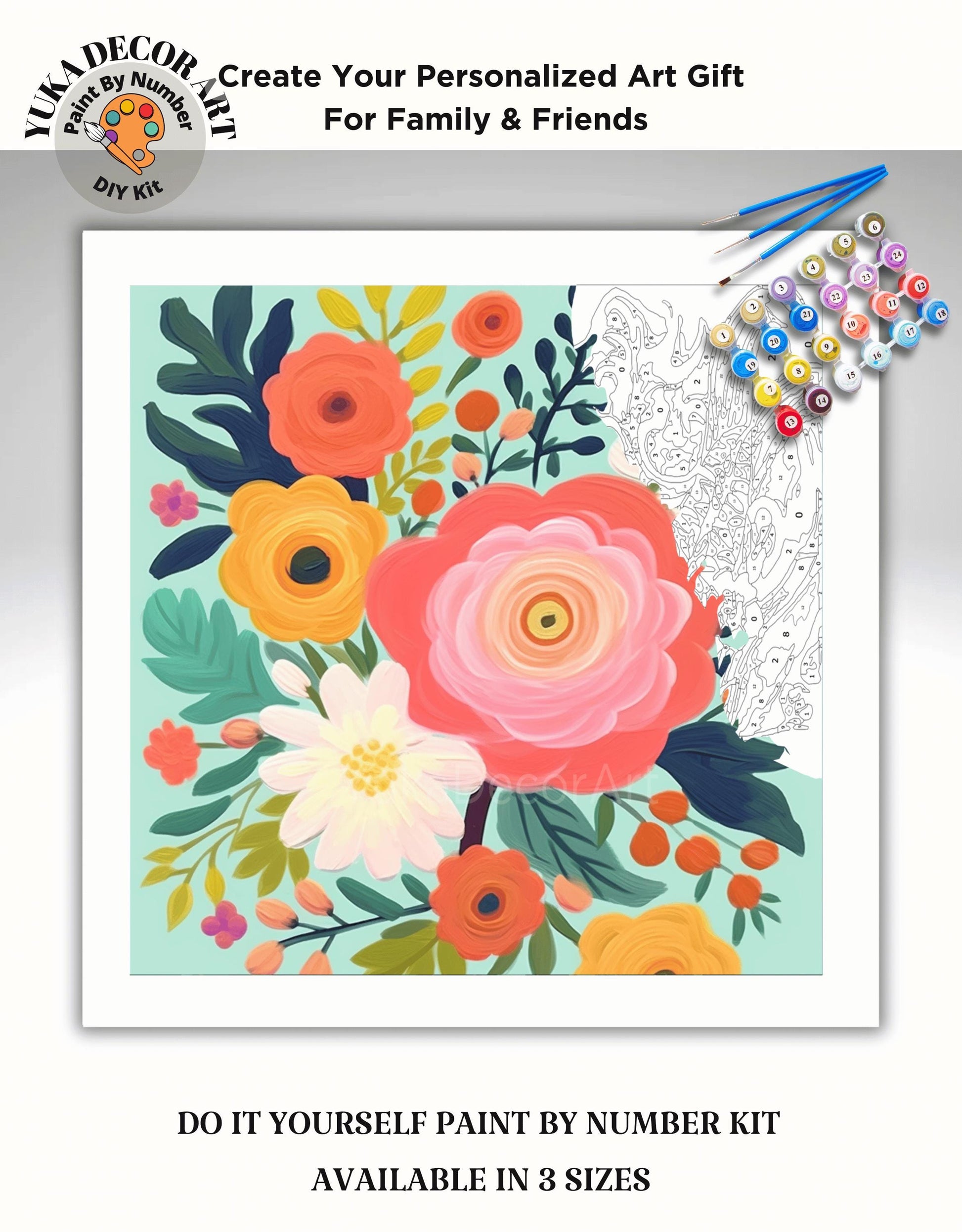 This Floral Paint by Number DIY Kit is a great gift idea for adults of any age from a teenager to senior adults who love this popular style of hobby kits from decades back. You can paint a beautiful picture even if you've never picked up a brush in your life. Start away in just 1-2-3 steps!