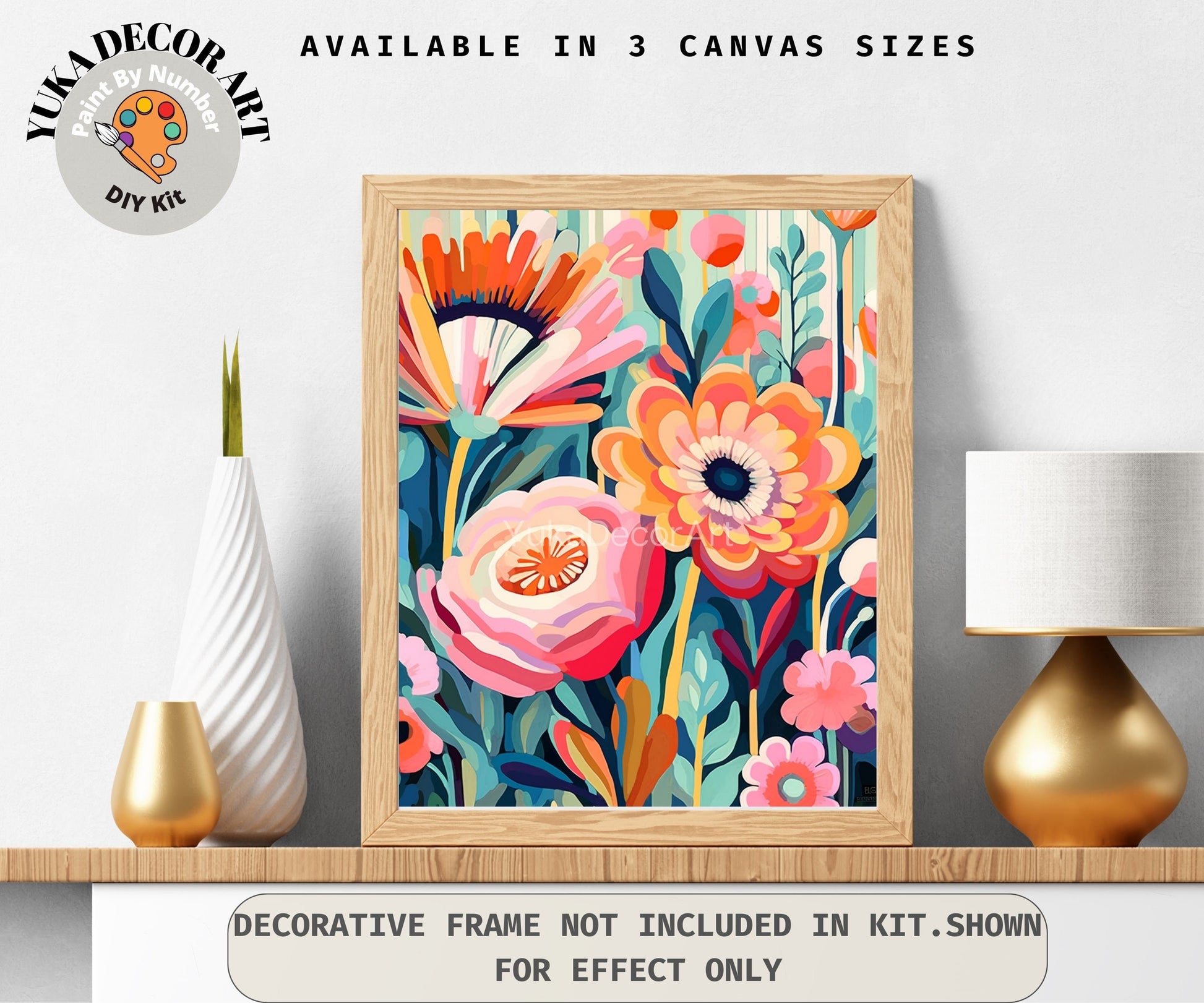 Boho Flowers PAINT by NUMBER Kit for Adults Abstract Flowers Paint Kit Easy Beginners Acrylic Paint DIY Kit Wall Art Decor