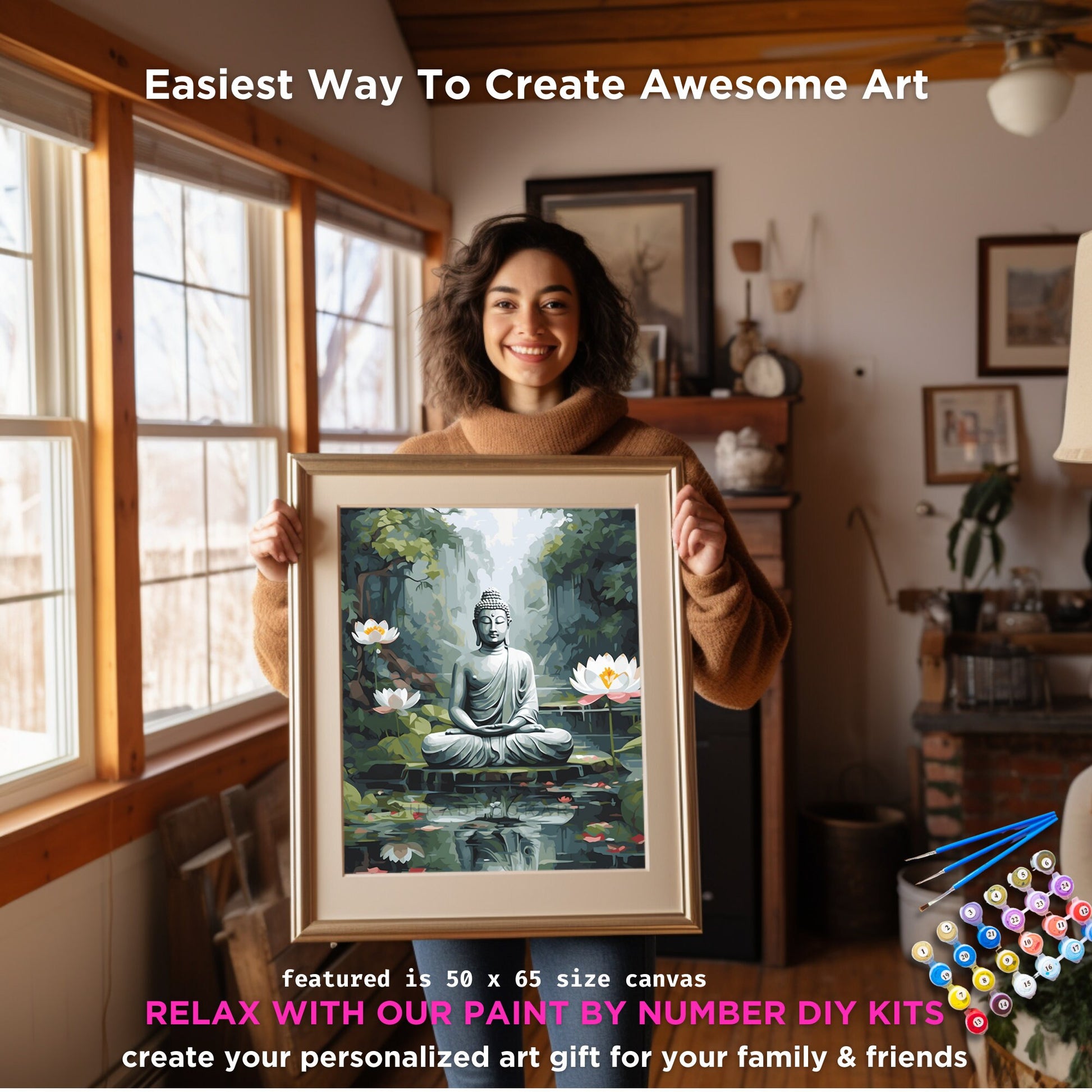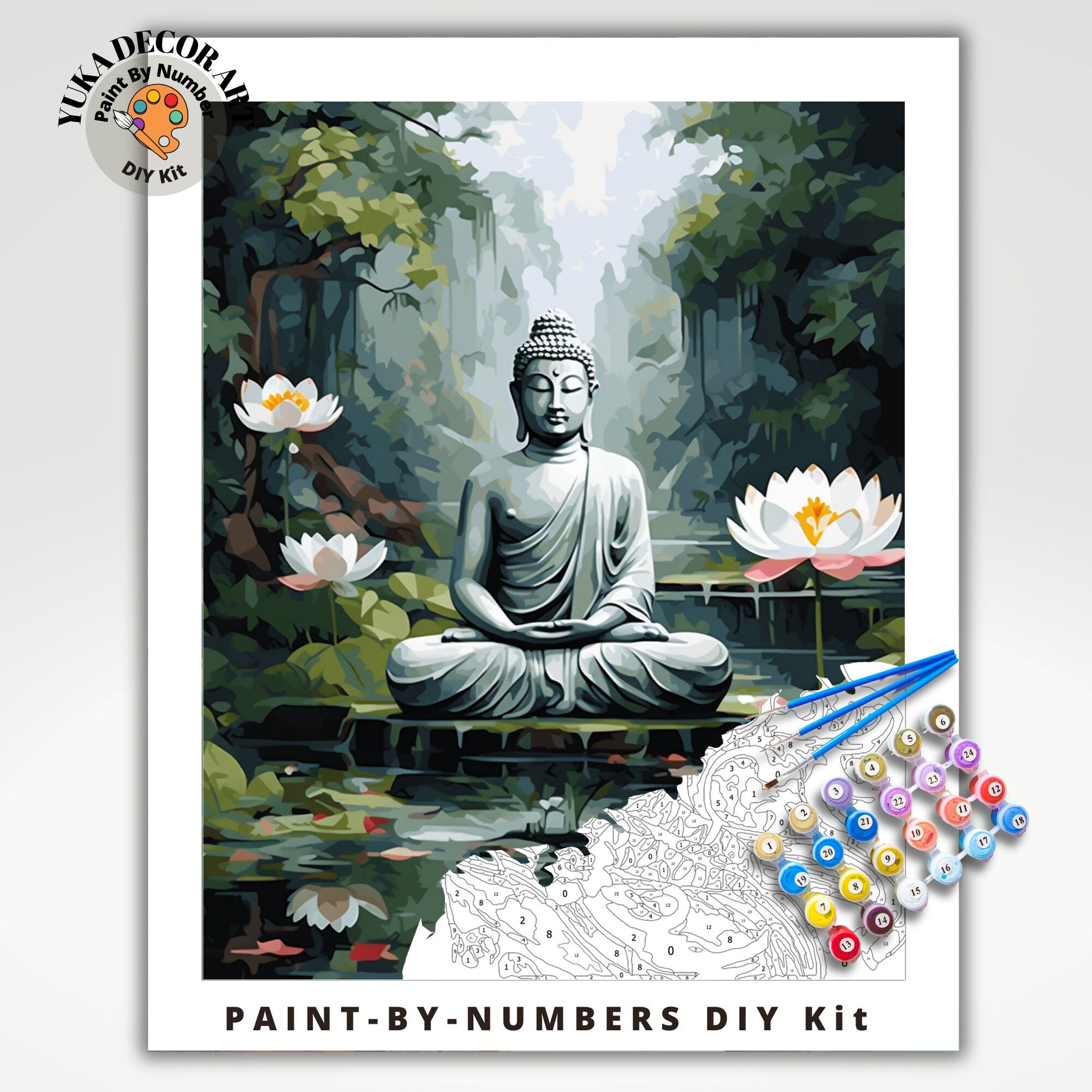 Buddha PAINT by NUMBERS Kit For Adults Serene Lake White Lotus Flower DIY Pastel Acrylic Paint Kit Zen Meditation Chakra Housewarming Gift