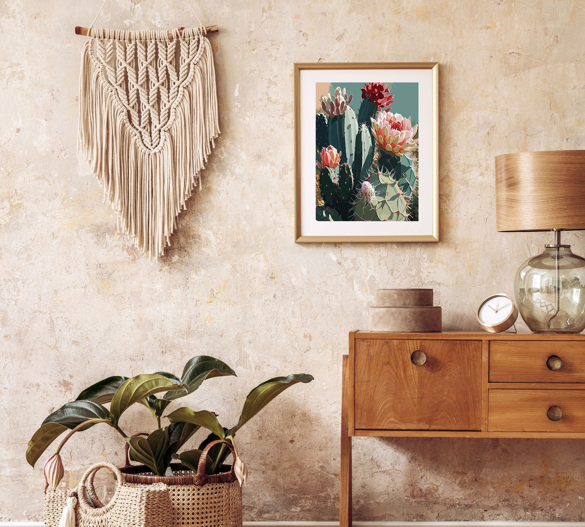 Cactus PAINT by NUMBER Kit for Adults Flowers Botanical Art Easy Acrylic Paint DIY Kit Gift for Mom Grandma Country Ranch Decor Housewarming