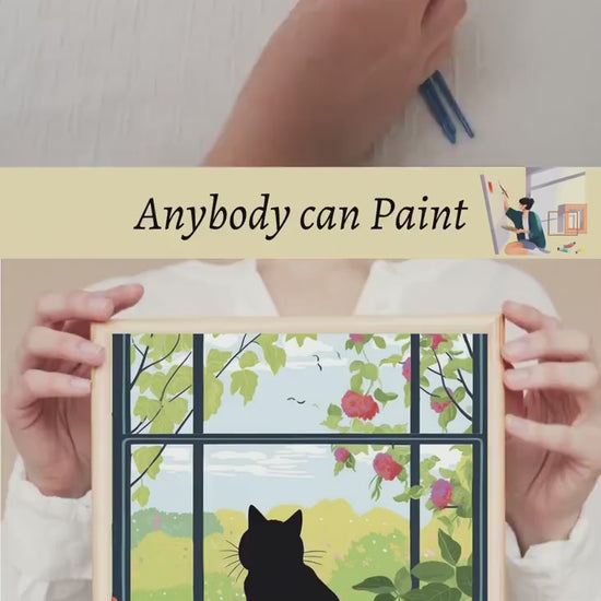 Embrace the heartwarming joy of our DIY Paint by Number Kit for Adults, featuring an adorable portrait of a cute black cat looking out of a window in a relaxed pose. This charming artwork i with its warm pastel tones and delightful ambience, perfectly captures the essence of casual chic art.