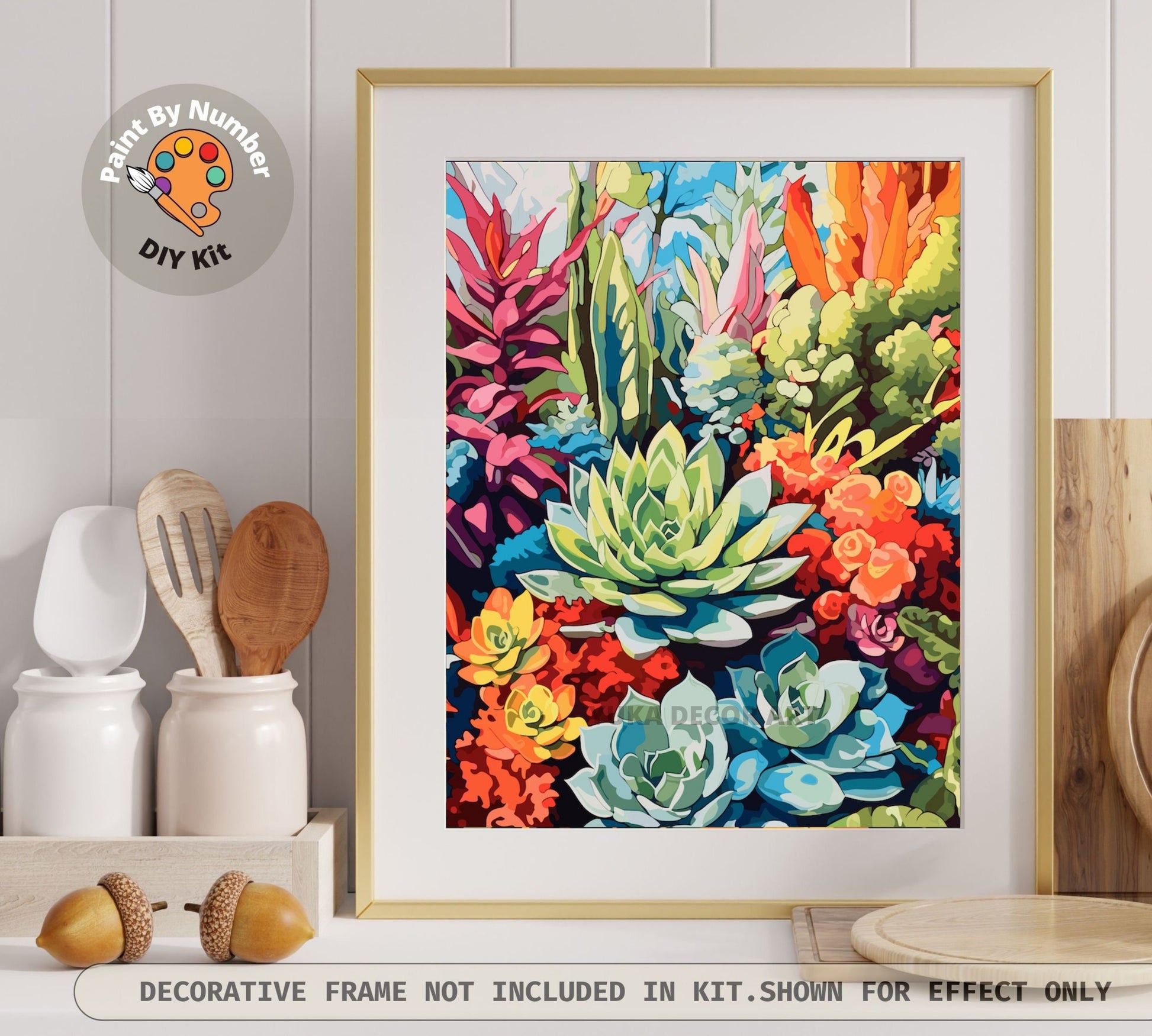 Colorful Succulents PAINT by NUMBER Kit Adult Easy DIY Hobby Acrylic Painting Canvas Birthday Custom Gift For Garden Lover Mom Wife Sister