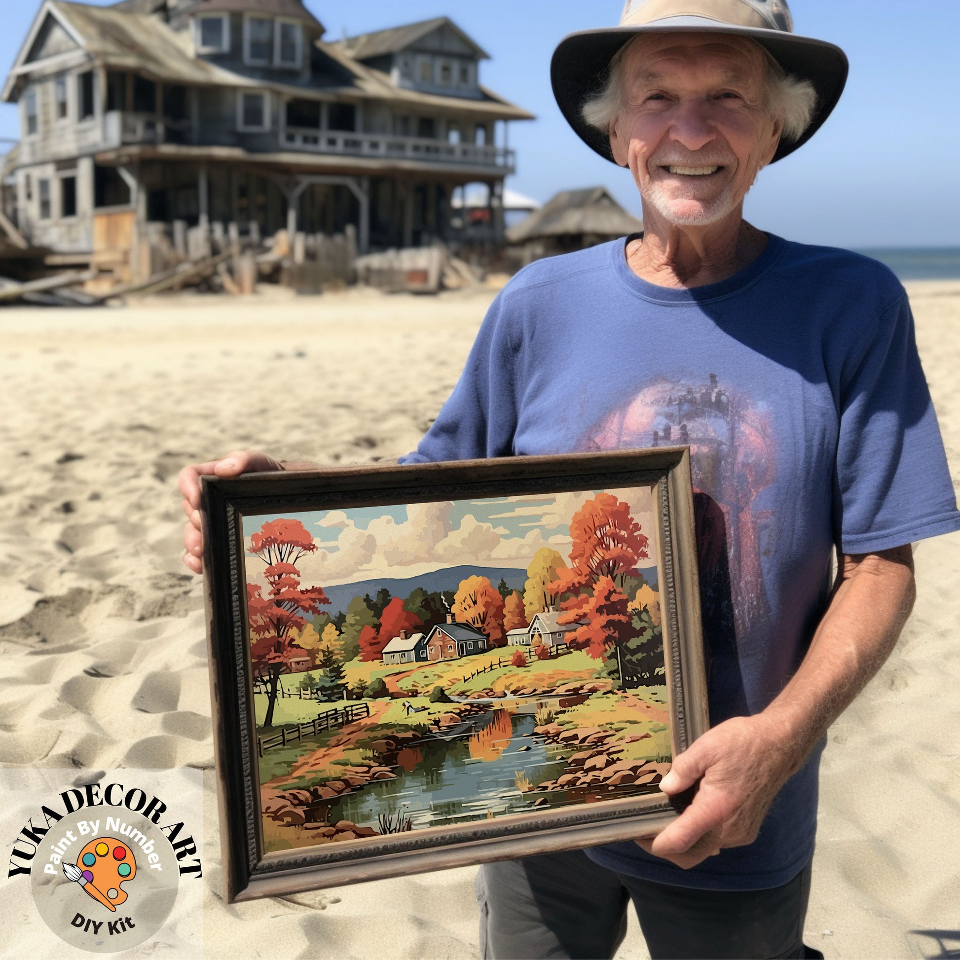 Countryside Fall Landscape PAINT by NUMBERS DIY Kit Adult Vintage Style 1960s Art Easy Beginner Paint Kit Hobby Gift For Mom Dad Grandma