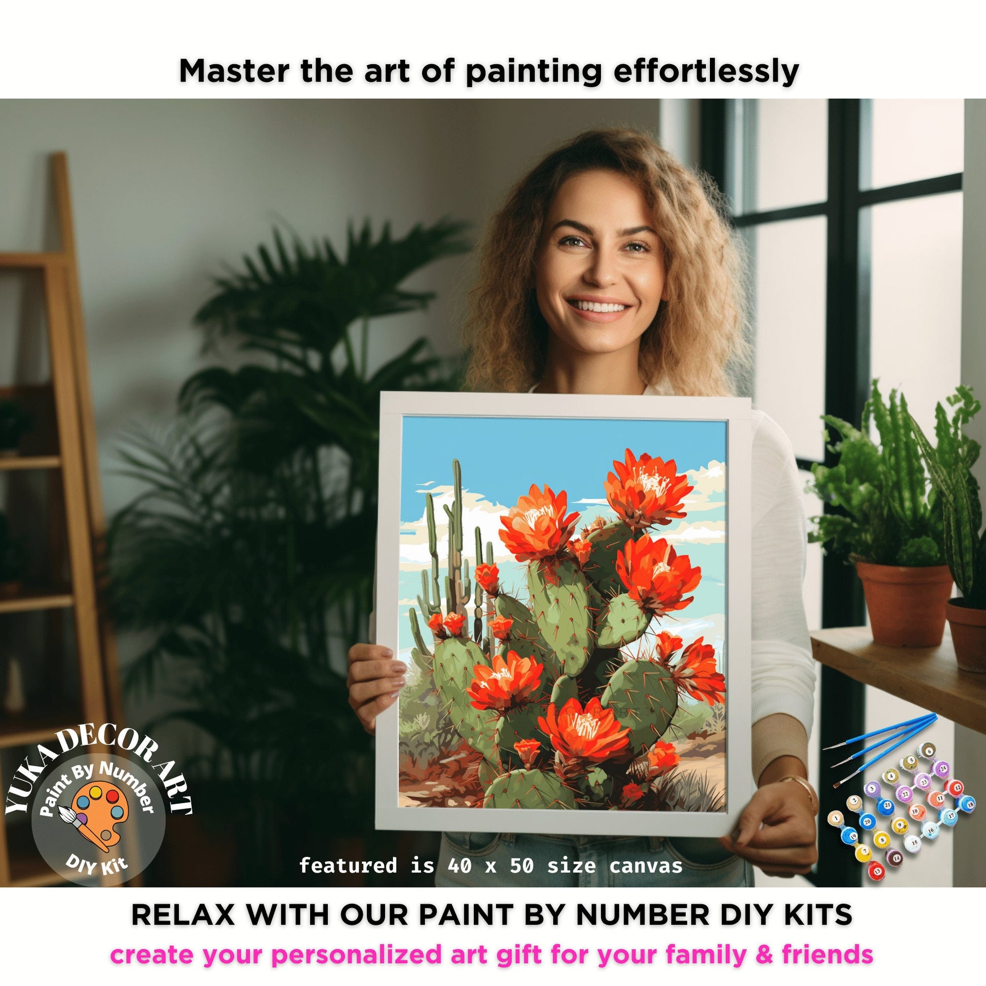 Desert Landscape PAINT by NUMBER Kit Adult Cactus Flowers Painting DIY by Numbers Craft Set Easy Beginners Birthday Gift For Mom Girlfriend