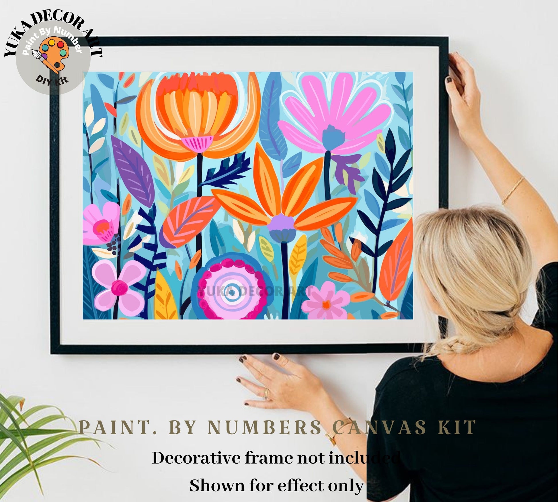 DIY Flowers PAINT by NUMBER Kit for Adults Modern Boho Whimsical Art Easy Beginner Acrylic Paint Custom Wall Art Custom Canvas Gift for Mom