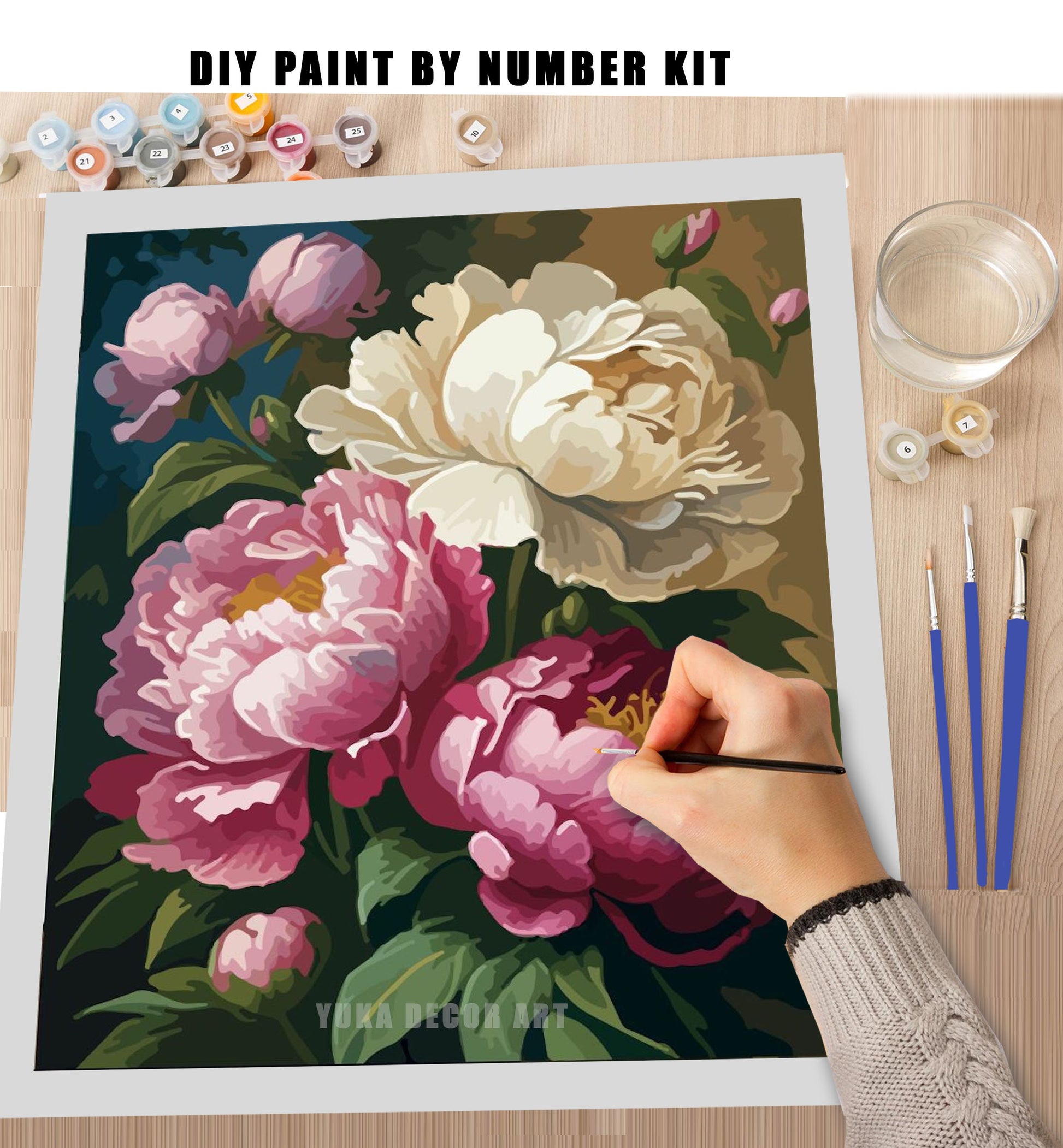 Floral Paint by Numbers Kit For Adult White Pink Peony Flowers Painting Easy Beginner Art Kit Personalised Gift For Mom Aunt Grandmother