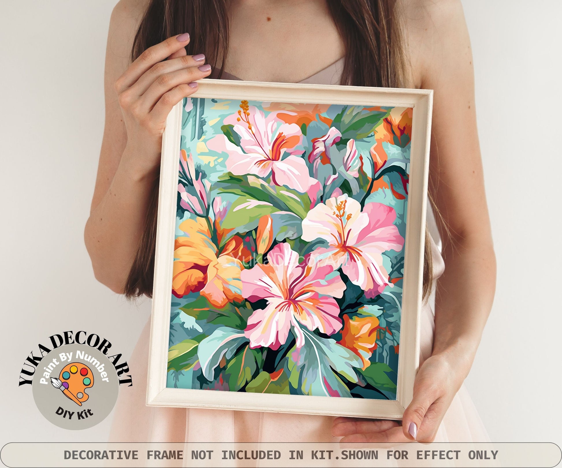 Garden Flower PAINT by NUMBER Kit for Adults Nature Flowers Art Easy Beginners Acrylic Paint DIY Kit Wall Art Gift For Mom Grandmother Wife