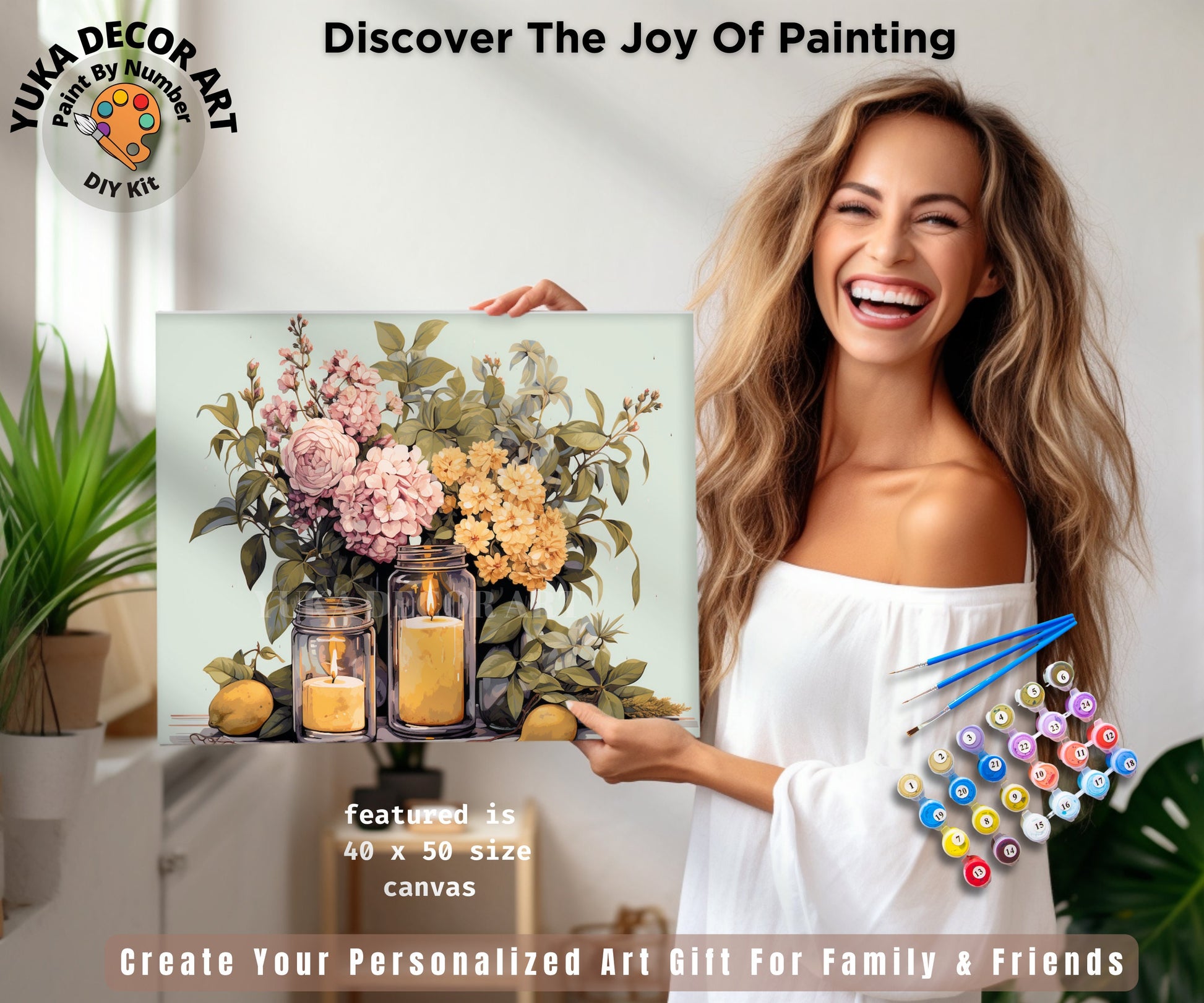 Add a touch of garden beauty to your space with this captivating wall art. Whether you're painting solo or enjoying a "paint and sip" session, this DIY kit offers a relaxing and enjoyable artistic experience. It makes a thoughtful gift for Mom, daughters, gardening lovers and anyone who appreciates the charm of floral arrangements, bringing a piece of nature's warmth into your home.