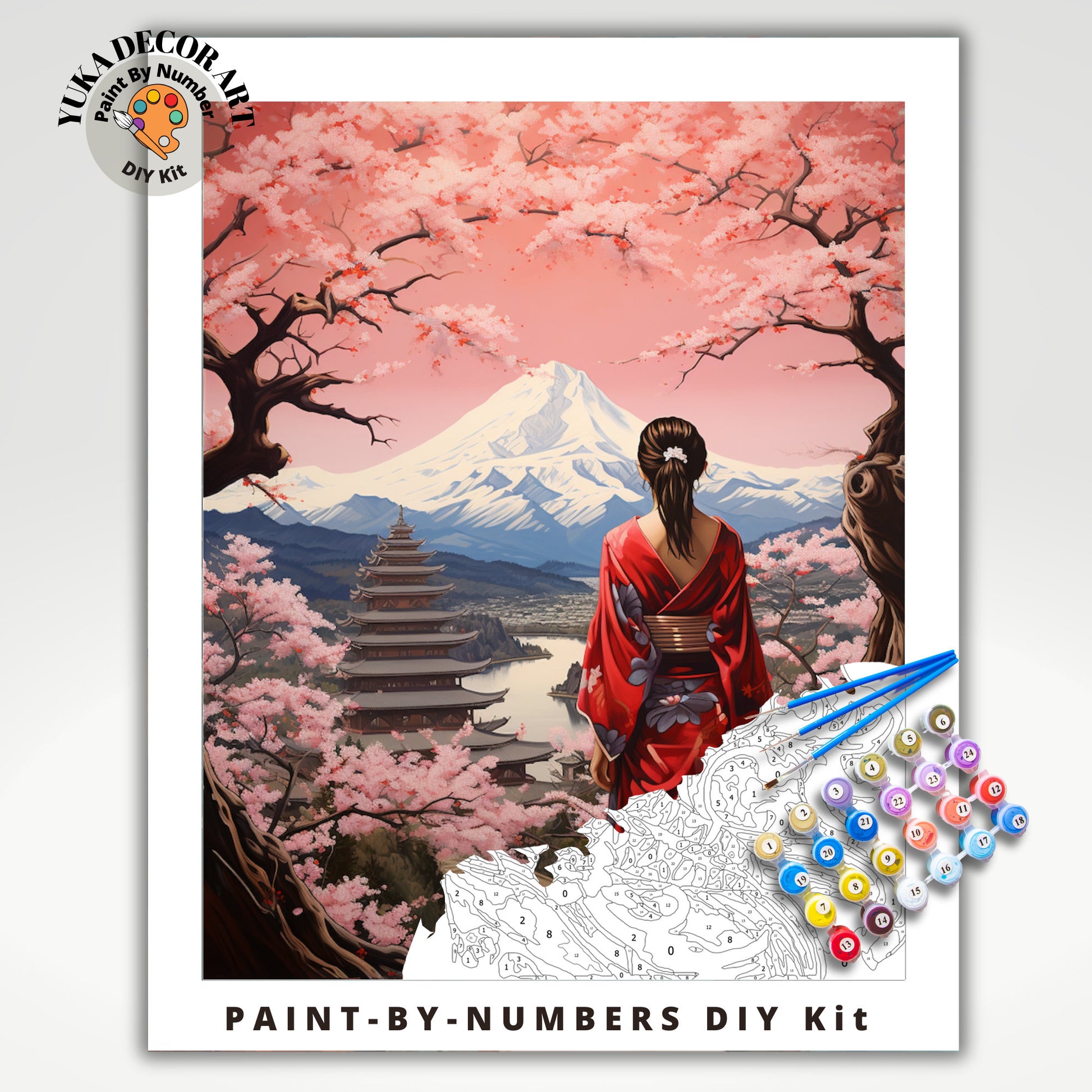 Japan PAINT by NUMBER Kit for Adults Beginner DIY Art Kit Pink Cherry Blossoms Mount Fuji Acrylic Painting Wall Art Decor Gift For Mom Aunt