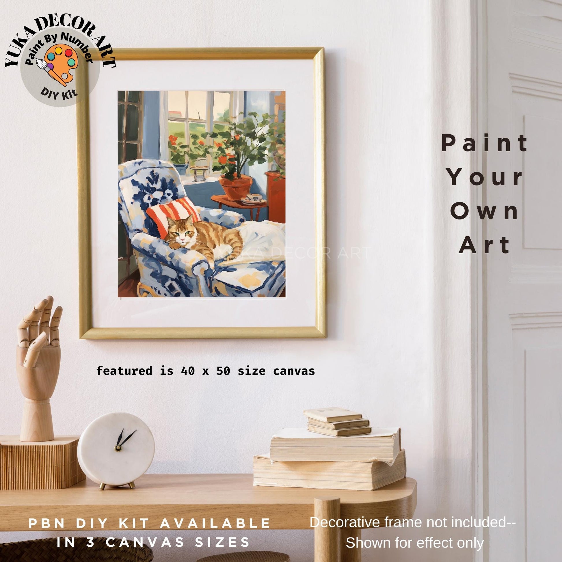 Embrace the heartwarming joy of our DIY Paint by Number Kit for Adults, featuring an adorable portrait of a cute cat lounging in a relaxed pose. This charming artwork inspired by the Matisse Style, with its warm tones and delightful ambience, perfectly captures the essence of casual chic portrait art.