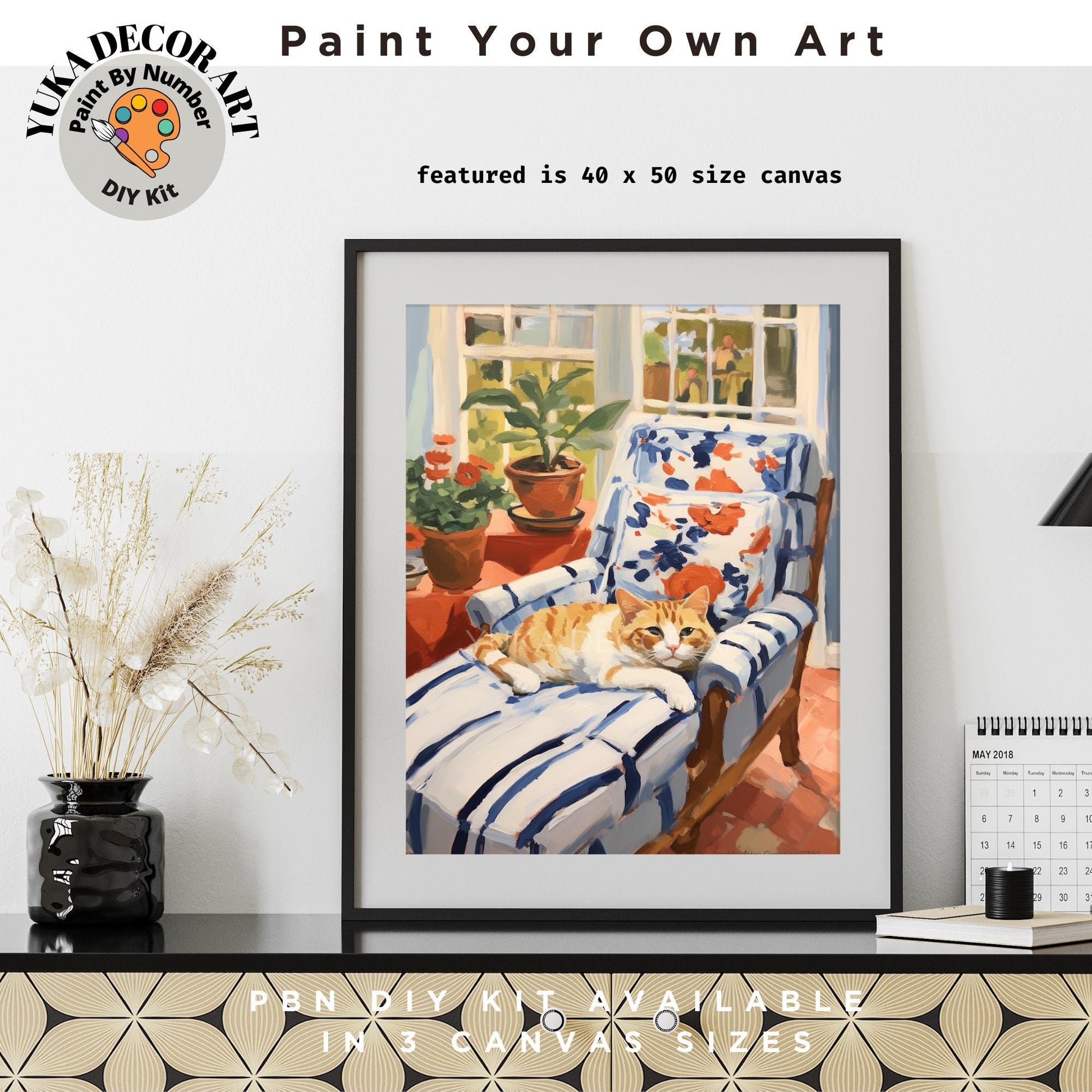 Embrace the heartwarming joy of our DIY Paint by Number Kit for Adults, featuring an adorable portrait of a cute cat lounging in a relaxed pose. This charming artwork inspired by the Matisse Style, with its warm tones and delightful ambience, perfectly captures the essence of casual chic portrait art.