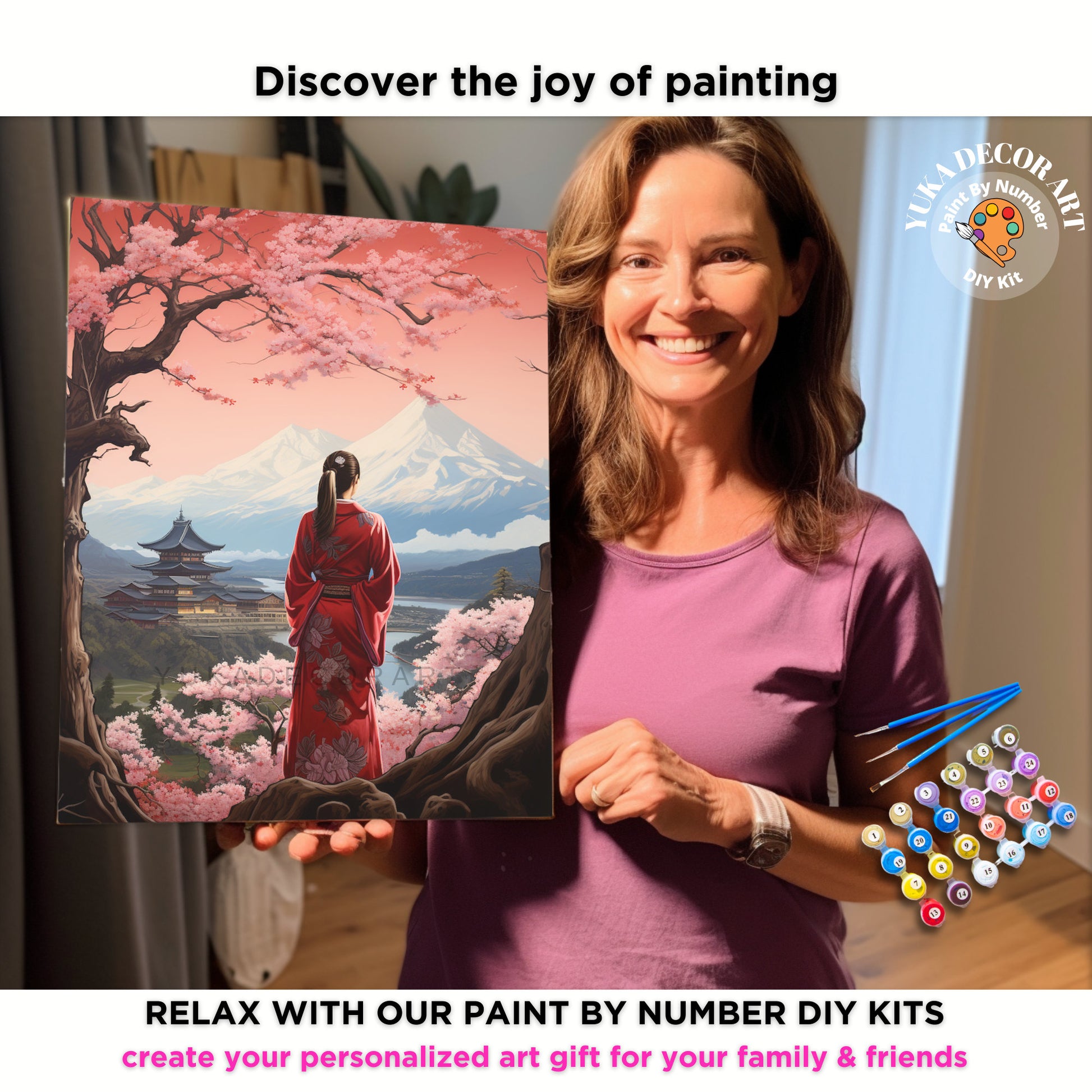 Mt.Fuji PAINT by NUMBER Kit Adults Beginner DIY Art Kit Pink Cherry Blossoms Japan Woman Acrylic Painting Wall Art Decor Gift For Mom Aunt