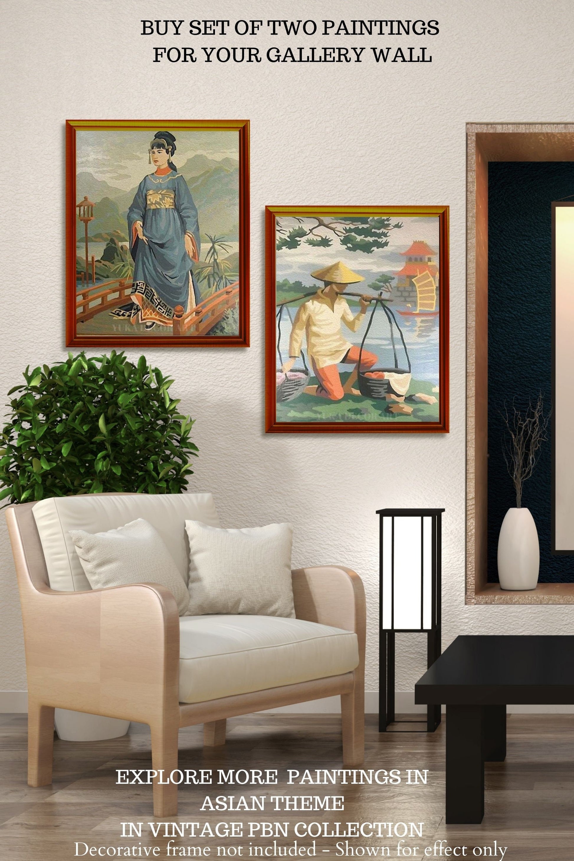 Oriental Woman PAINT by NUMBER Kit Adult , Vintage Style Painting, Japanese Garden Landscape , Easy DIY Beginners Painting Kit , Mom Gift