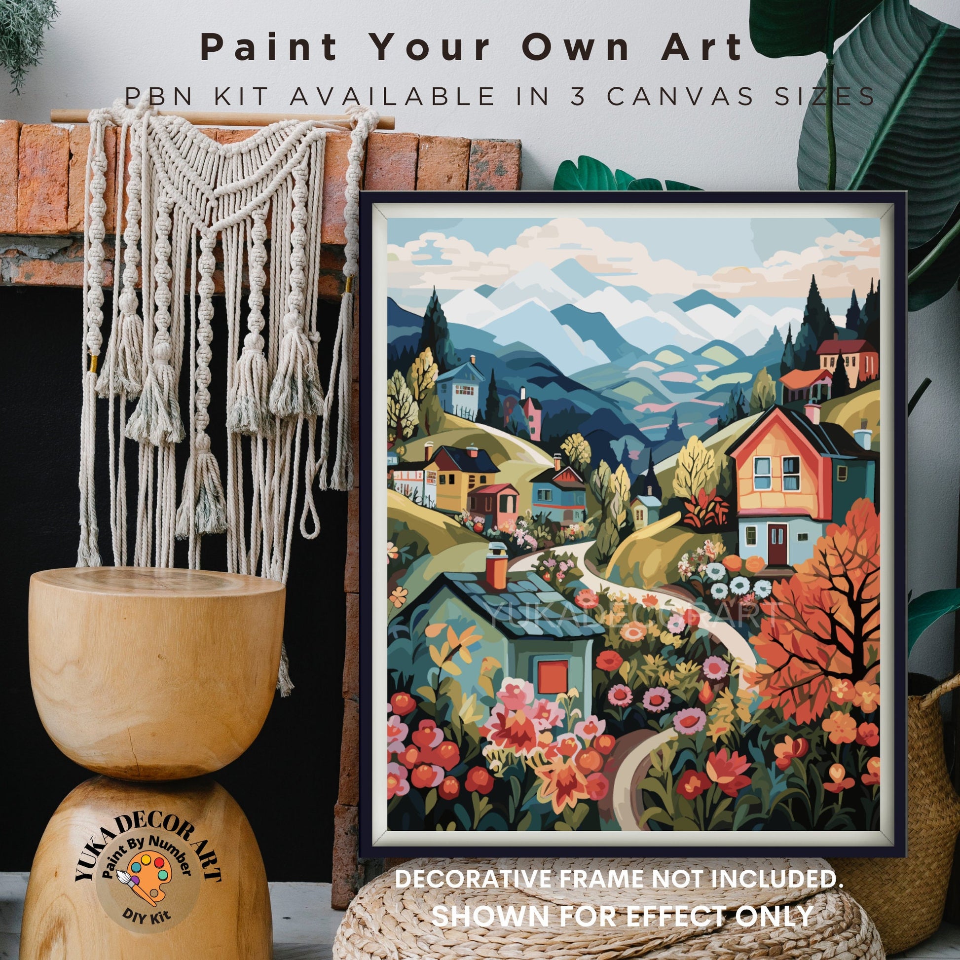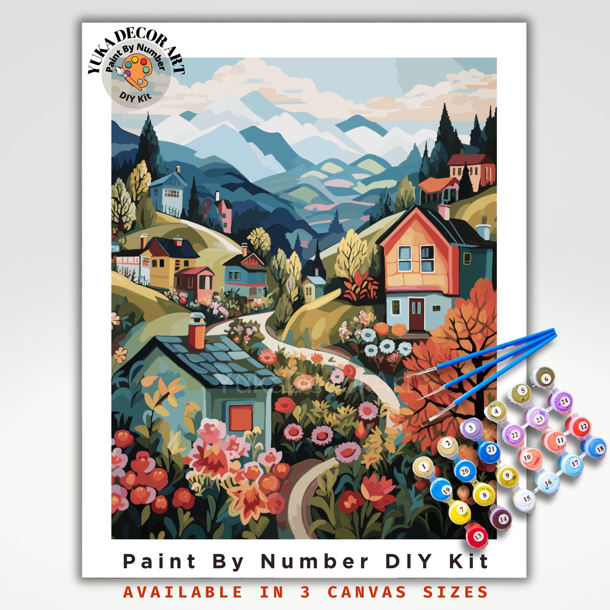 PAINT by NUMBER Kit Adults Mountain Flowers Vibrant Colors Landscape Modern Minimalist Naive Art DIY Painting Acrylic Canvas Paint Kit Gift