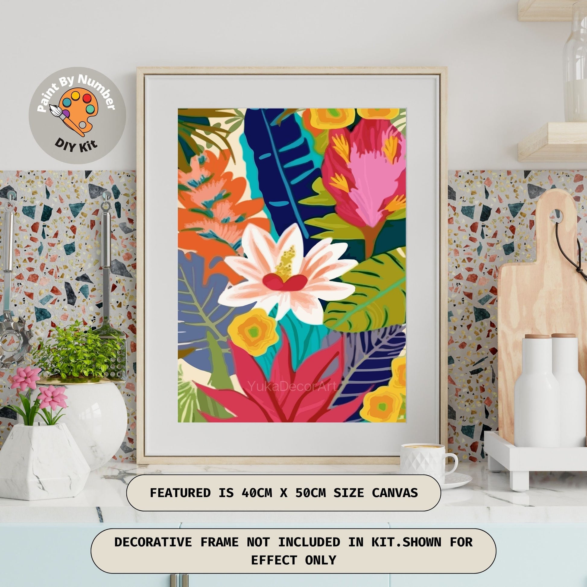 PAINT by NUMBER Kit for Adults ,Garden Flowers Botanical Abstract Art ,Easy Beginners Acrylic Paint DIY Kit ,Living Bedroom Wall Art Decor