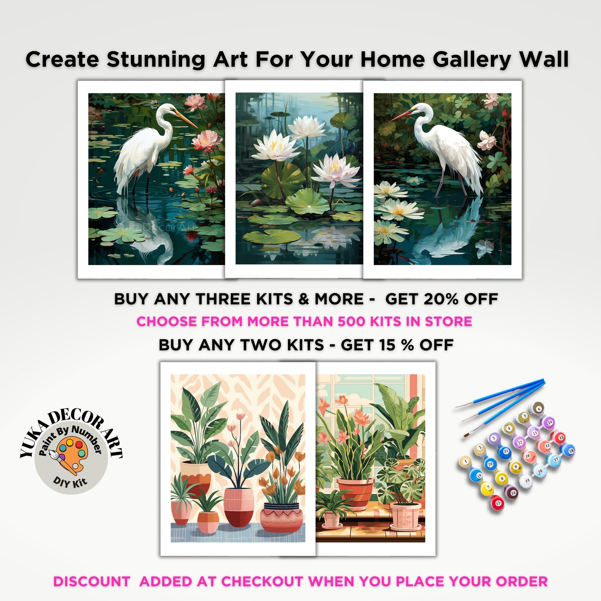 Whether you're an amateur artist or a beginner, these painting by numbers kits provide an opportunity to create your own gallery wall with your painted canvas art. Elevate your home decor with the tranquil charm of botanical-inspired pieces brought to life by your artistic vision.