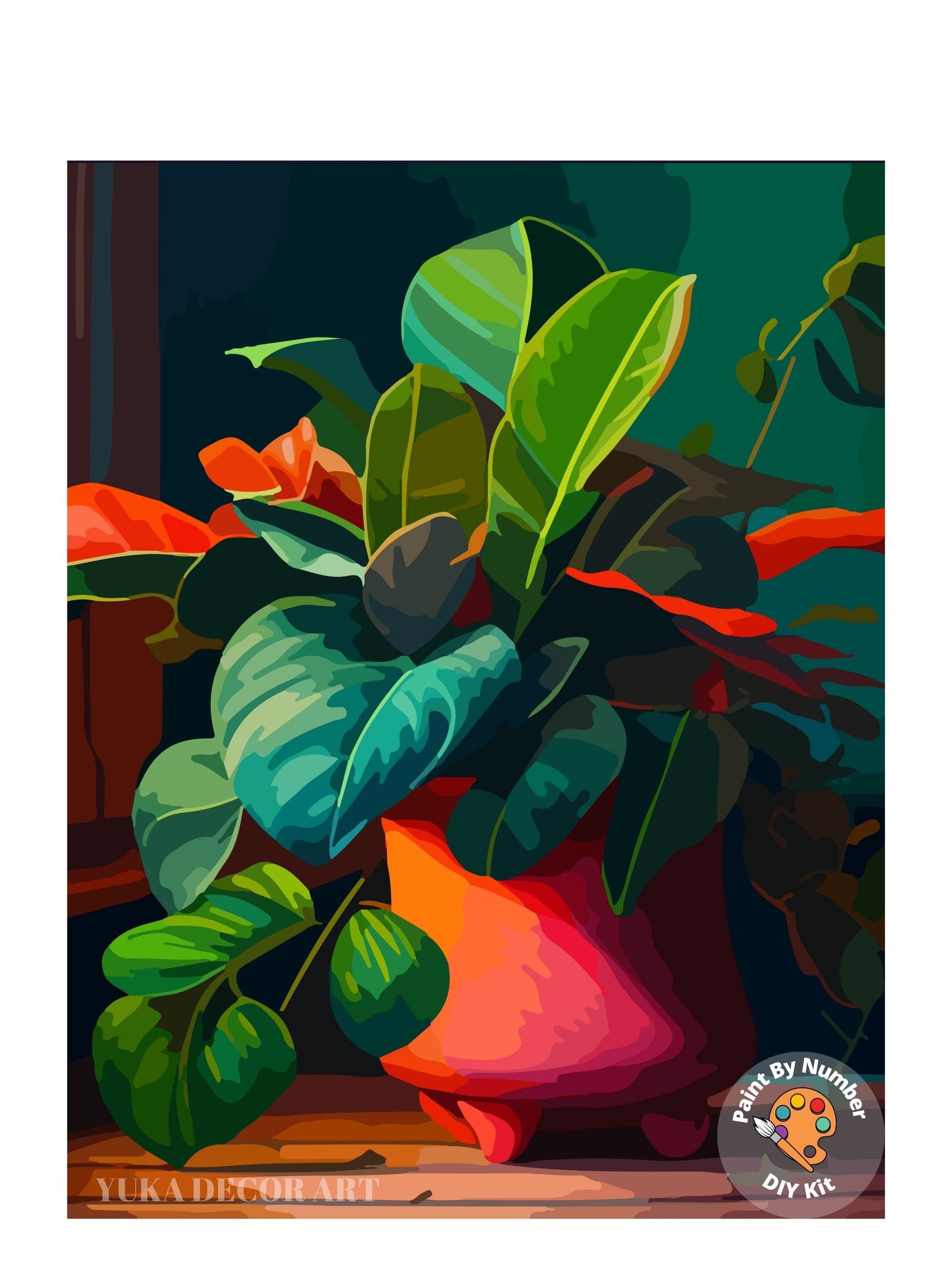 PAINT by NUMBERS Adult ,House Plants In Rustic Container , Easy DIY Beginners Paint Kit , Wall Art Gift for Aunt Grandmom