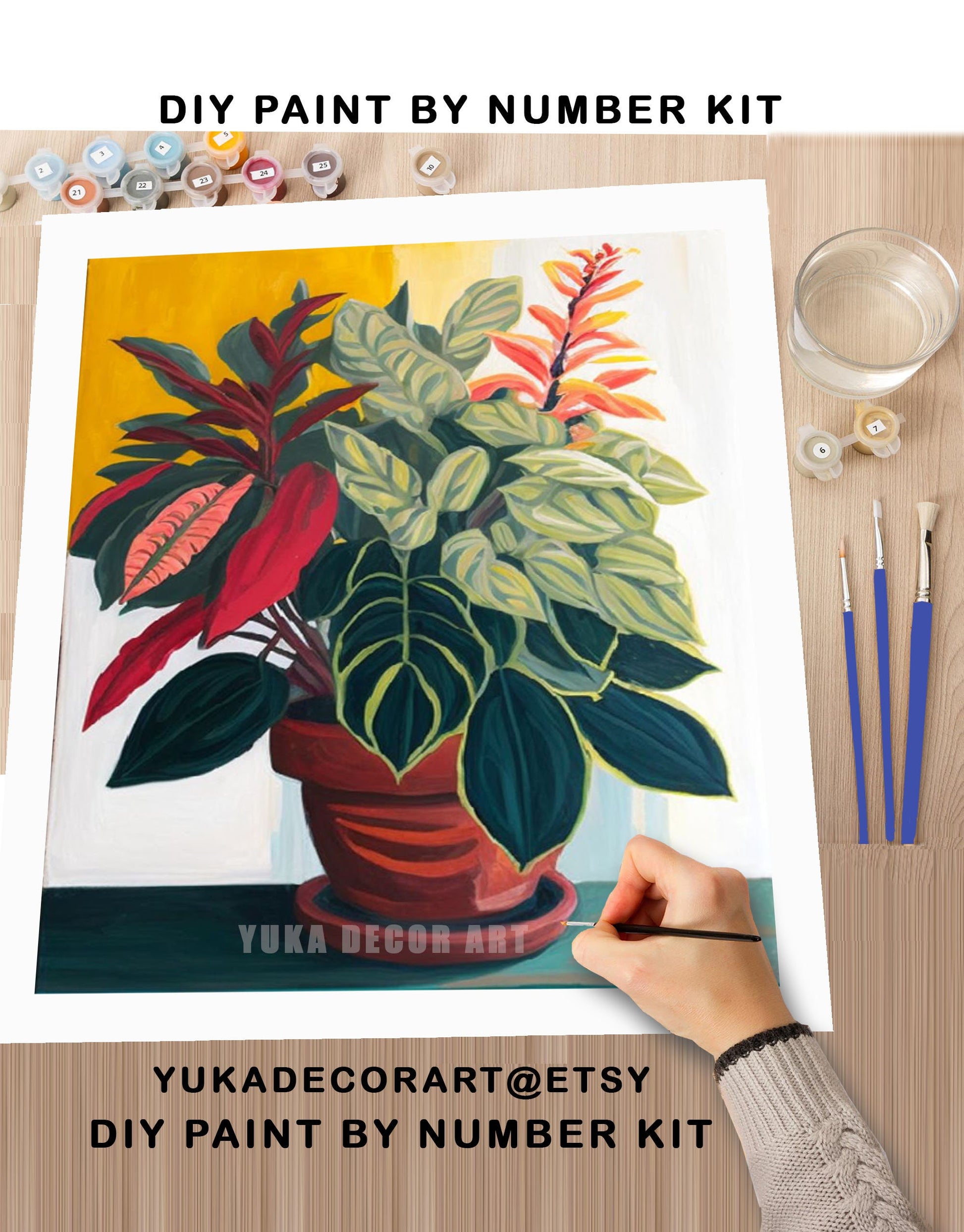 PAINT by NUMBERS Adult ,House Plants In Rustic Container , Easy DIY Beginners Paint Kit , Wall Art Gift for Aunt Grandmom