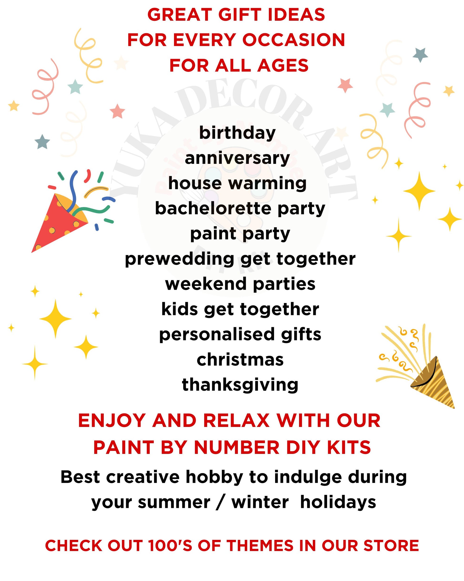 Our Paint by Number Diy Kits help unleash your inner artist and embark on a journey to create your very own canvas art pieces.Our DIY painting kits provide all the tools you need to craft stunning artworks, making it effortless to curate a gallery wall that reflects your personal style and creativity.