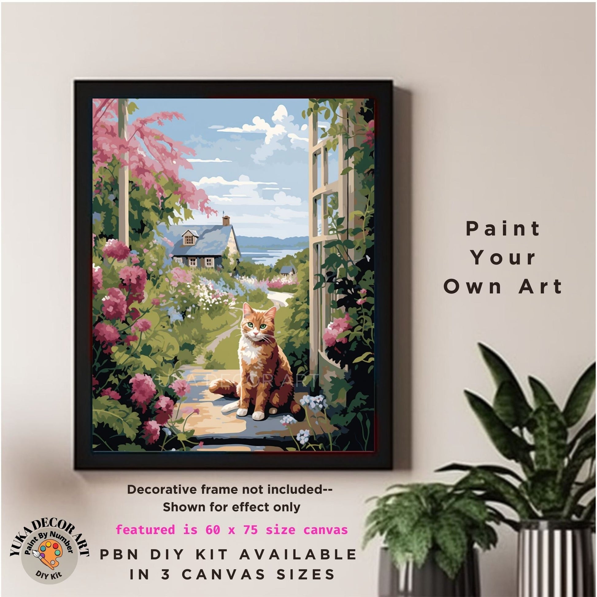 PAINT by NUMBERS Kit Adults Cat In The Flower Garden Easy Beginners Pastel Colors DIY Paint Kit Anniversary Gift For Mom