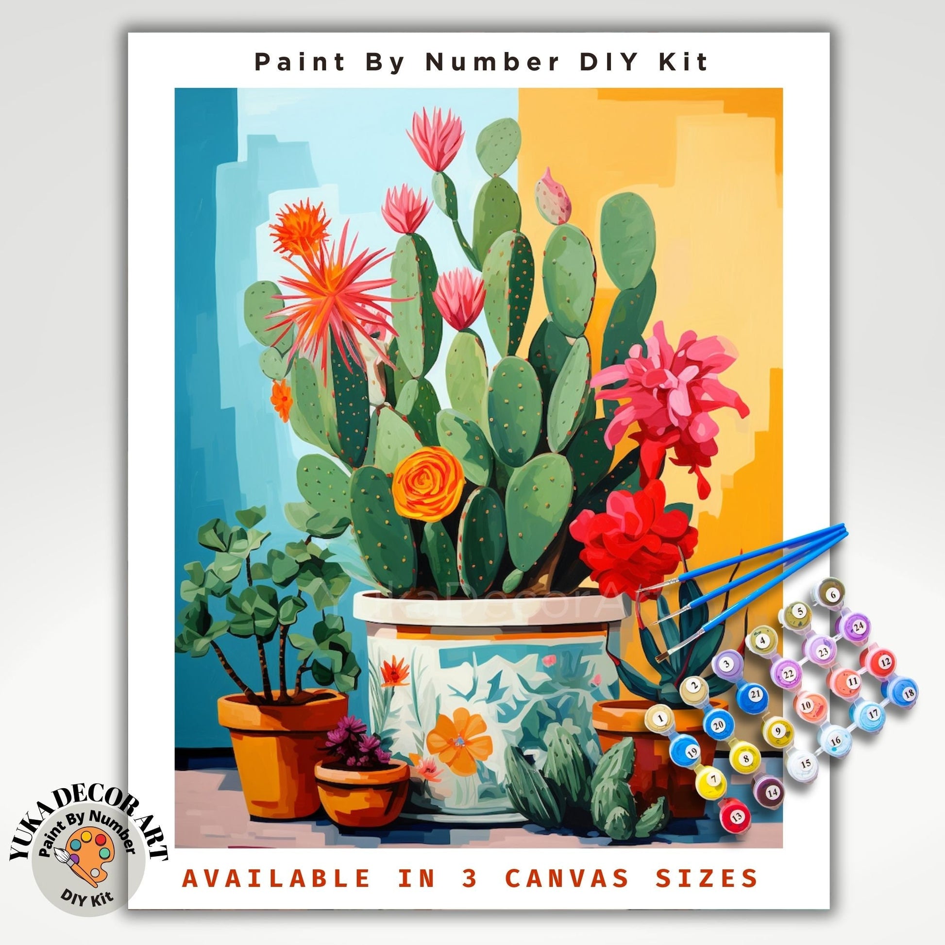 Immerse yourself in the world of artistic expression as you bring these vibrant colorful cactus and flower compositions to life. With our DIY " painting by numbers" kits, you can easily craft your own canvas art pieces, making it a breeze to curate a stunning gallery wall that reflects your unique style and creativity.