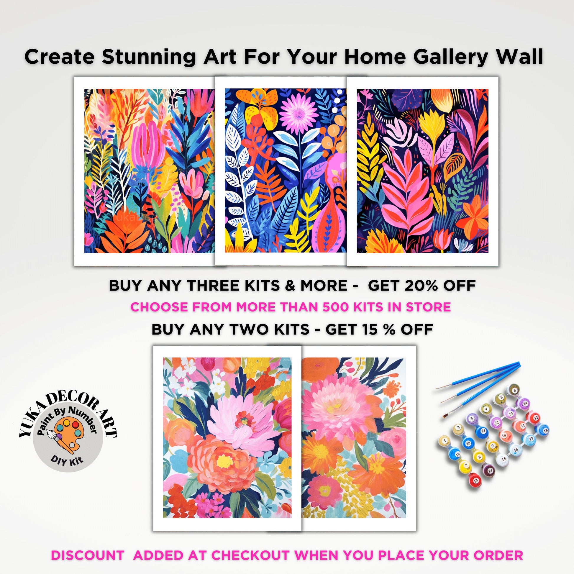Elevate your space with our DIY floral Paint by Number Kit Adult, capturing the essence of flowers in vibrant pastel shades through free fluid strokes of acrylic paint. Immerse yourself in vibrant and cheerful colors as you effortlessly create floral art. This Easy Beginner Acrylic Painting DIY Kit is a thoughtful home decor gift, perfect for bedrooms, nurseries, and private offices.