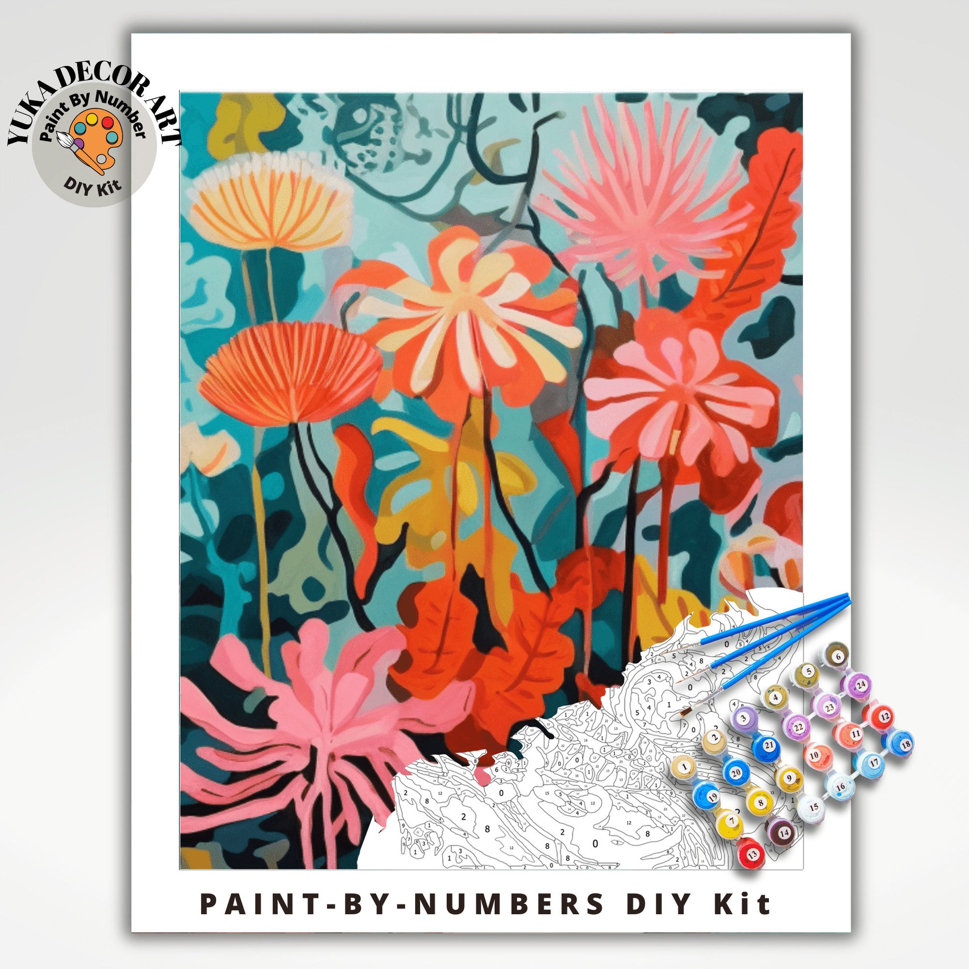 Transform your space with our DIY Paint-by-Number Kit Adult featuring abstract flowers in a bohemian retro style. This easy beginner acrylic painting DIY kit is a perfect home decor gift. Channel your inner artist with this adult paint by numbers set, embracing the joy of DIY.