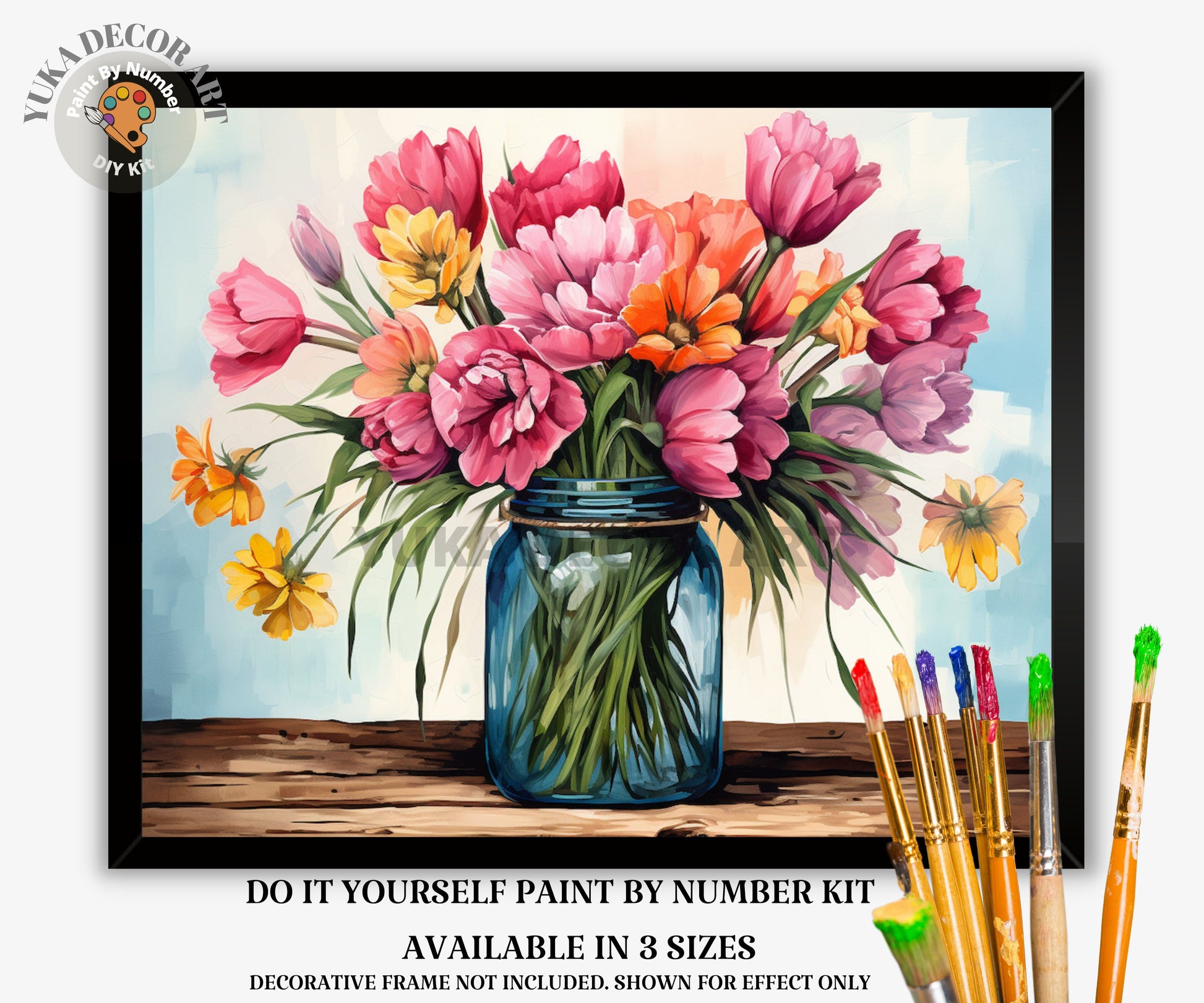 Rustic Floral PAINT by NUMBERS Kit Diy Adults Spring Flowers Bouquet DIY Painting Easy Beginners Canvas Wall Art Christmas Gift Girlfriend