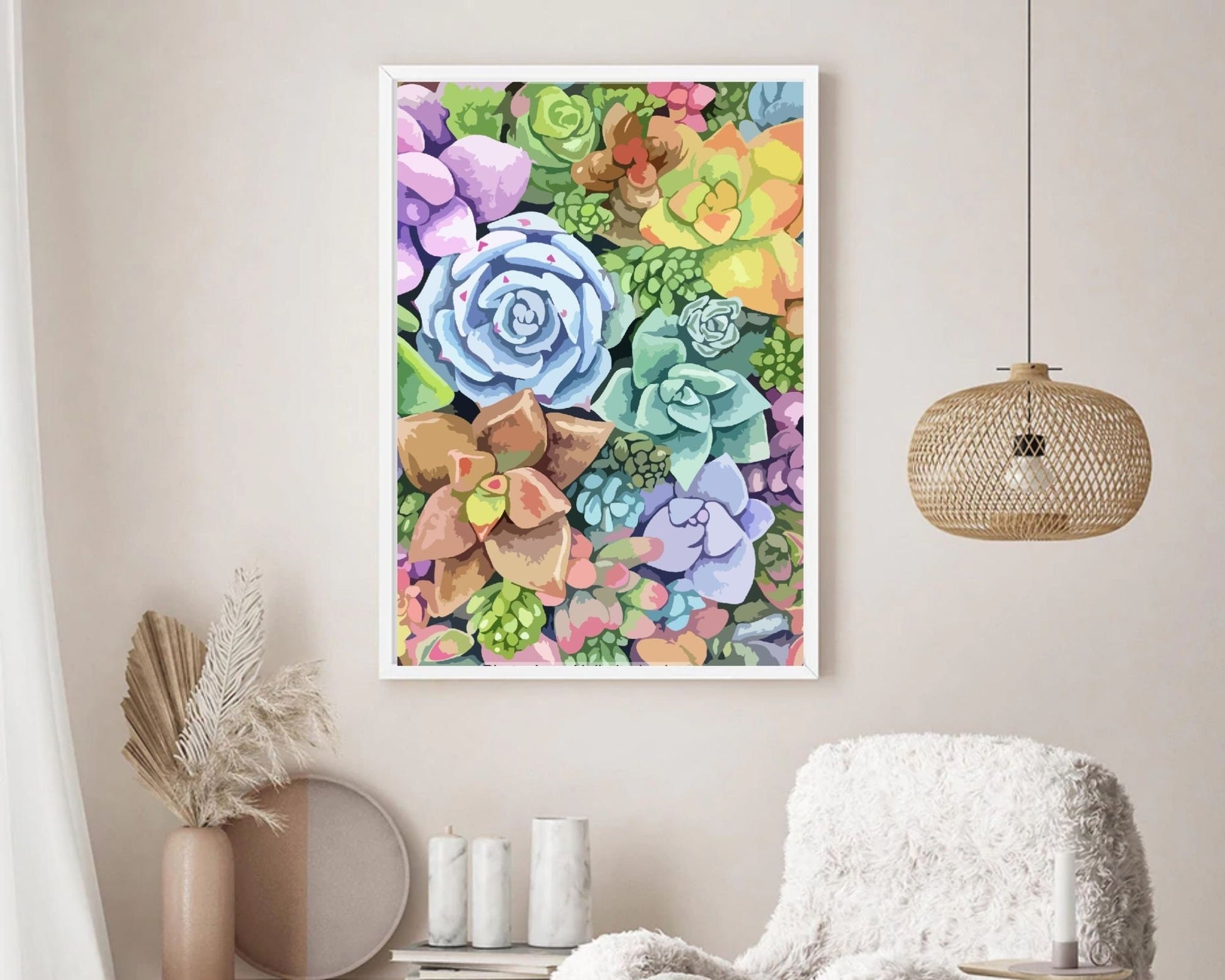 Succulents Garden Paint by Number Kit Adult, Canvas Painting ,DIY Color by Numbers Set, Easy DIY Beginners Painting Kit ,Home Decor