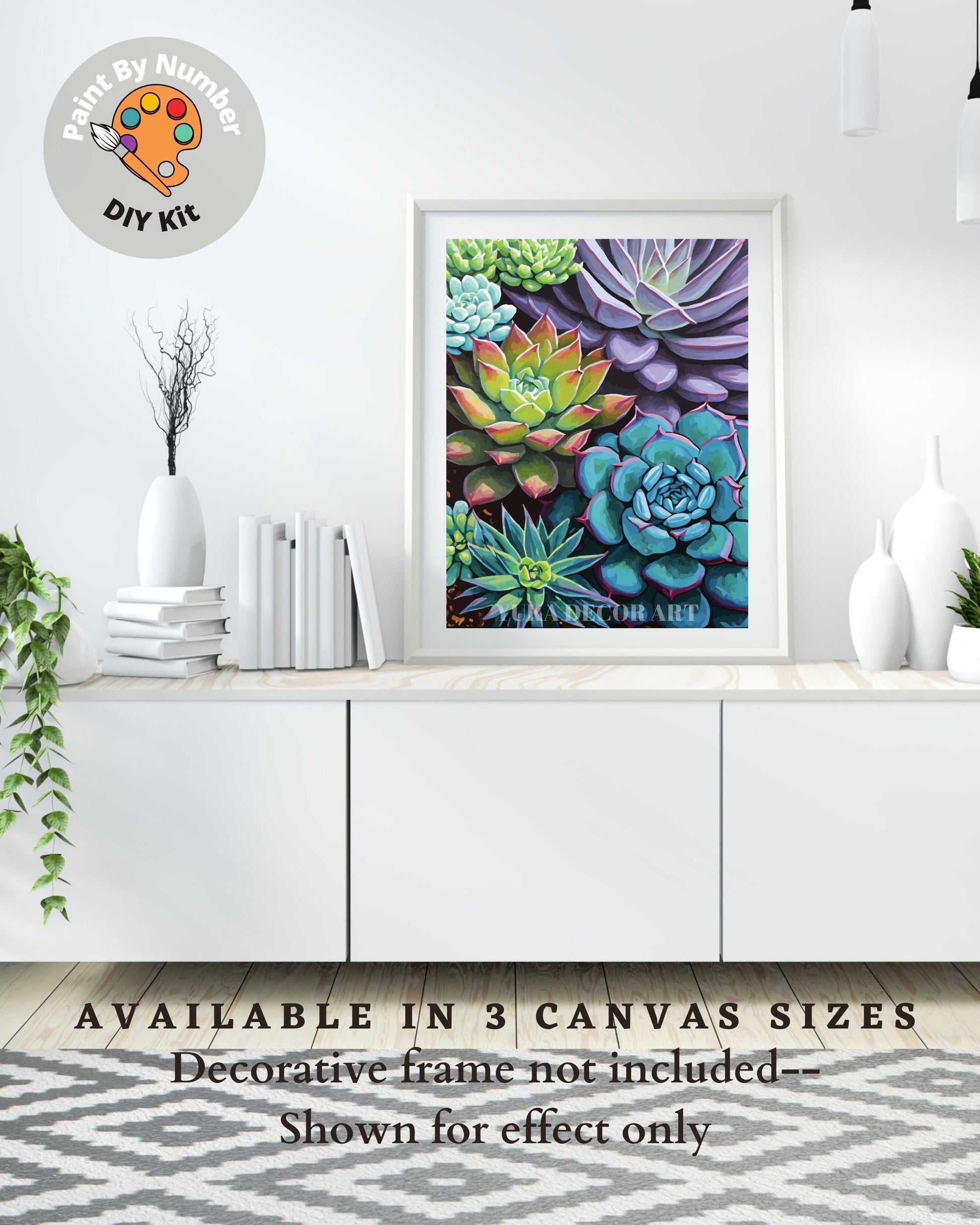 Succulents Garden Paint by Number Kit Adult, Canvas Painting ,DIY Color by Numbers Set, Easy DIY Beginners Painting Kit ,Home Decor