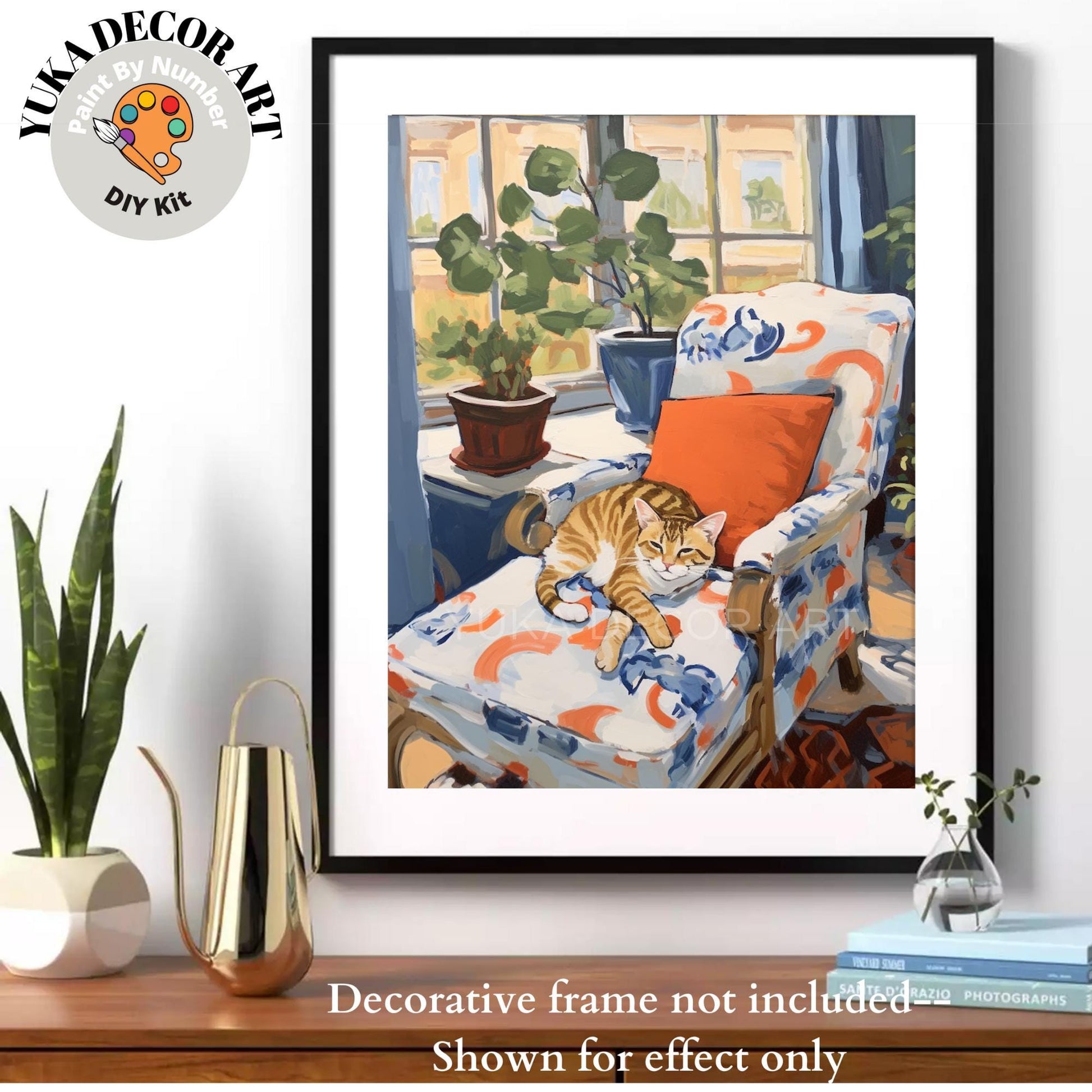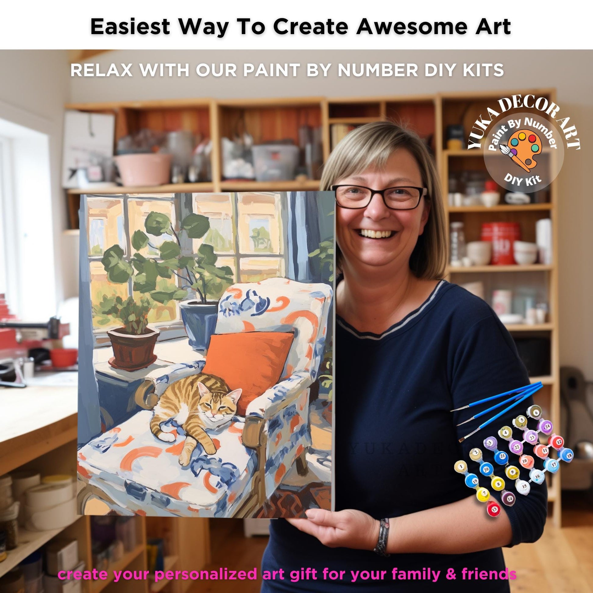 Embrace the heartwarming joy of our DIY Paint by Number Kit for Adults, featuring an adorable portrait of a cute cat lounging in a relaxed pose. This charming artwork inspired by the Matisse Style, with its warm tones and delightful ambience, perfectly captures the essence of casual chic portrait art.