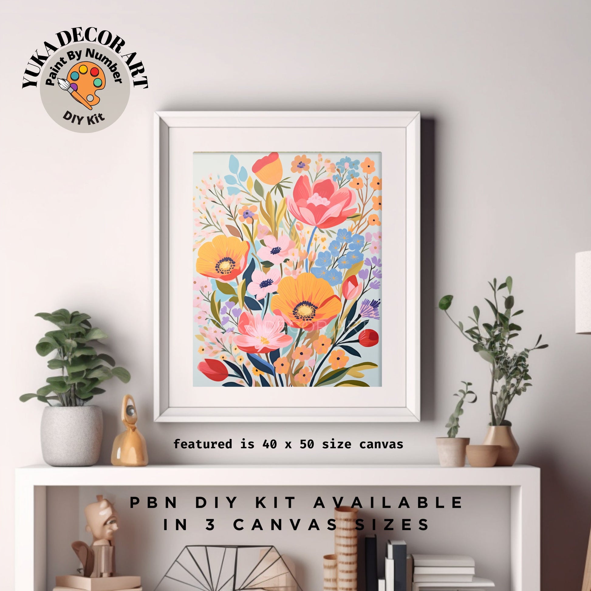 Wildflowers PAINT by NUMBERS Kit Adults Spring Flower Garden DIY Painting Easy Beginners Hobby Kit Wall Art Housewarming Gift Girlfriend Mom